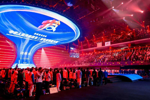 華燈璀璨,掌聲如潮。9月23日晚,當(dāng)348名獲獎選手高舉隊旗與獎?wù)?,?dāng)大賽會旗在璀璨的舞臺上完成交接傳遞,當(dāng)良渚文化和人形機器人在現(xiàn)場8000余名觀眾的歡呼聲中共舞……中華人民共和國第三屆職業(yè)技能大賽閉幕式在鄭州奧體中心體育館完美落幕!